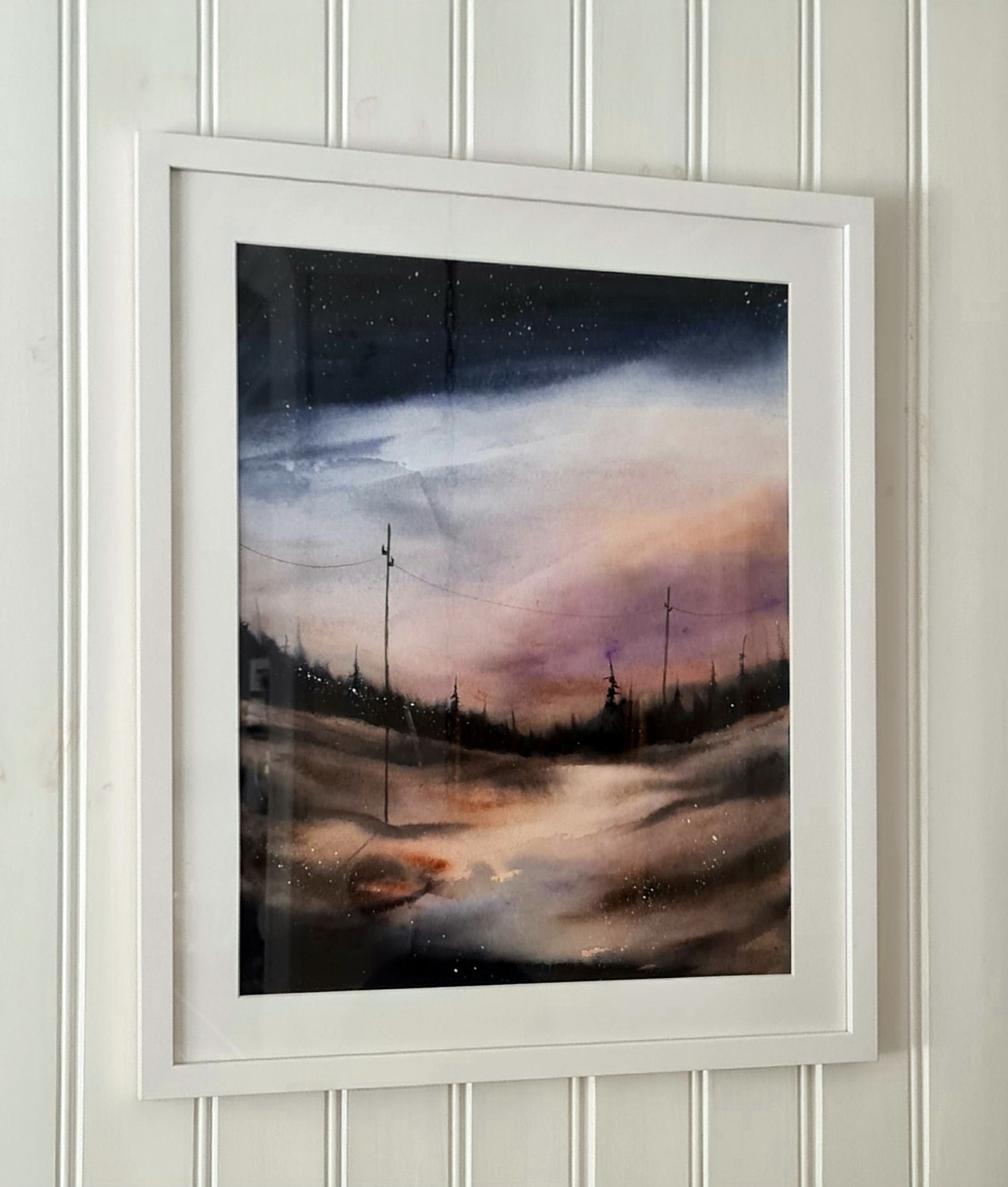 The artwork is delivered with a white or wooden frame 50x60 cm, including acid-free mount and glass.